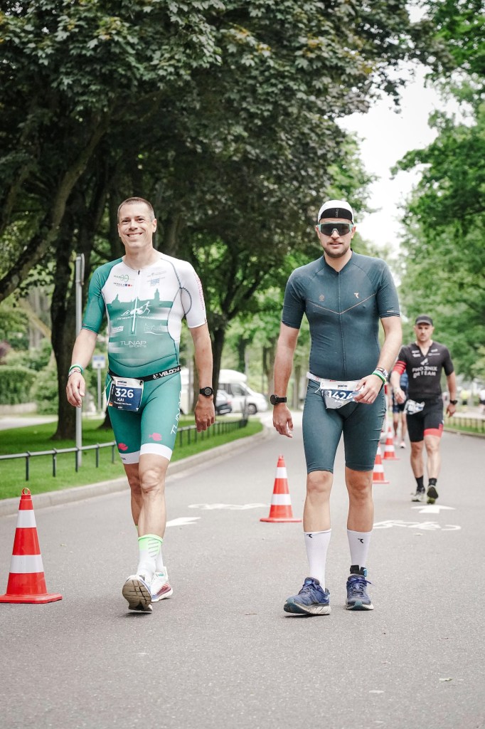Ich passiere den Bogen, raus aus der Wechselzone, jetzt liegen nur noch vier Runden an der Alster vor mir. Endlich sind viele Menschen da, die anfeuern und mir Energie geben. Die Beine sind erwartungsgemäß schwer, das kenne ich von Wettkämpfen, und es hält die ersten 2–3 km an.
